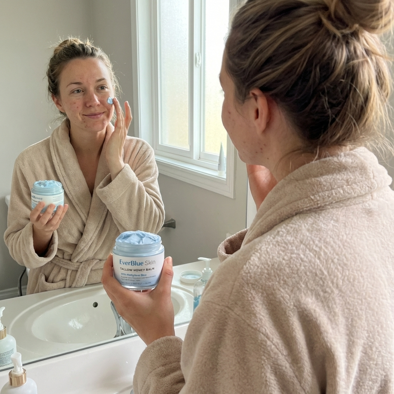 Here's the distinction: tallow's fatty acid profile is nearly identical to human sebum — the oil your own skin produces. Your skin doesn't register it as a foreign invader. It absorbs it the way it absorbs its own oil — efficiently, without blocking the follicle.