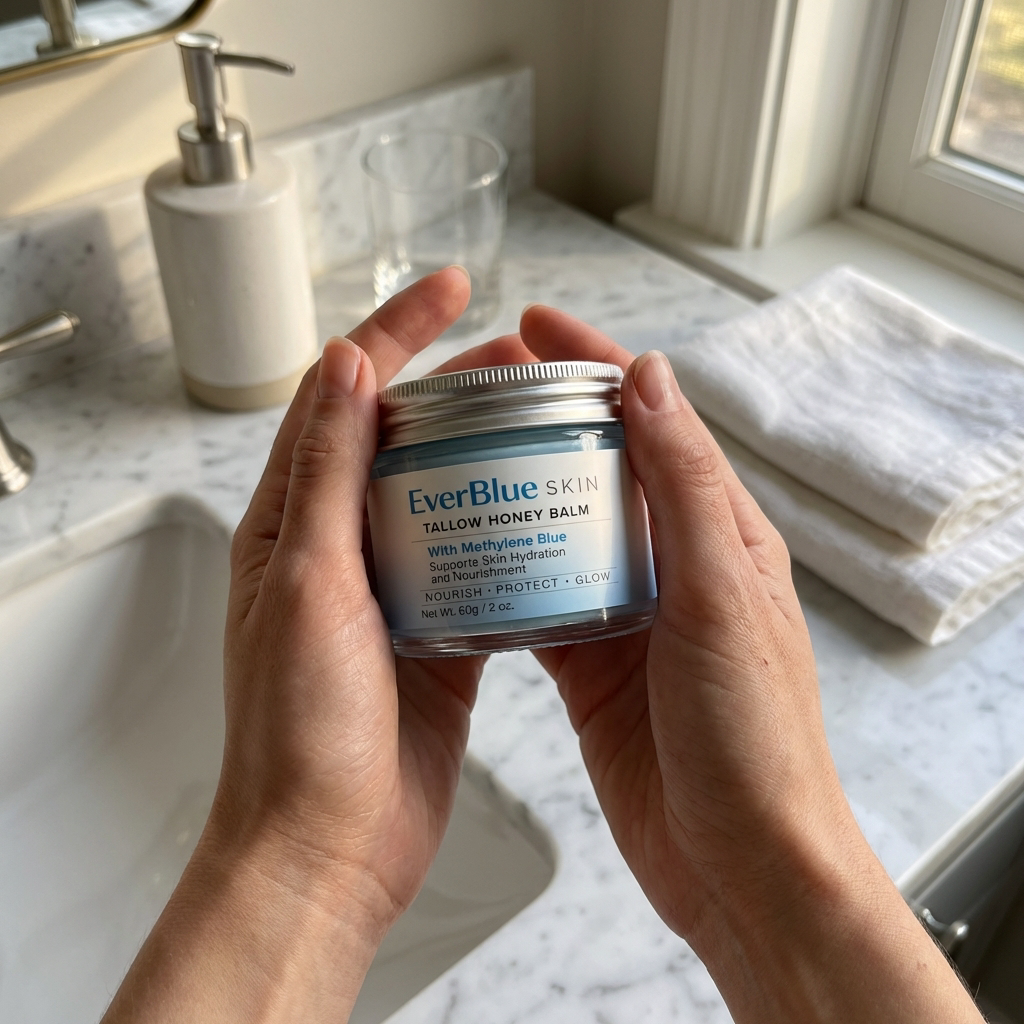 EverBlue Skin has zero water. Zero preservatives. Zero emulsifiers. There is nothing in this formula that exists for any reason other than your skin.